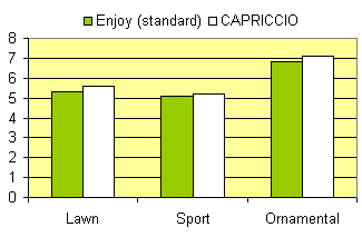CAPRICCIO is very winter hardy and will add extra persistency to mixtures intended for cold areas and largely contribute with improved density and fineness. With scores 8-8-*-7 on the German RSM list the high quality is further underlined.