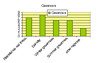 Casanova creates a very dense turf with a nice and stable middle green appearance all over the year. There is not much difference between the winter and the summer appearance of Casanova. It has quite a good disease resistance against the major lawn diseases.
